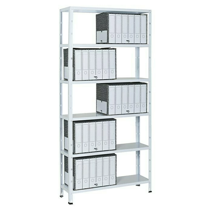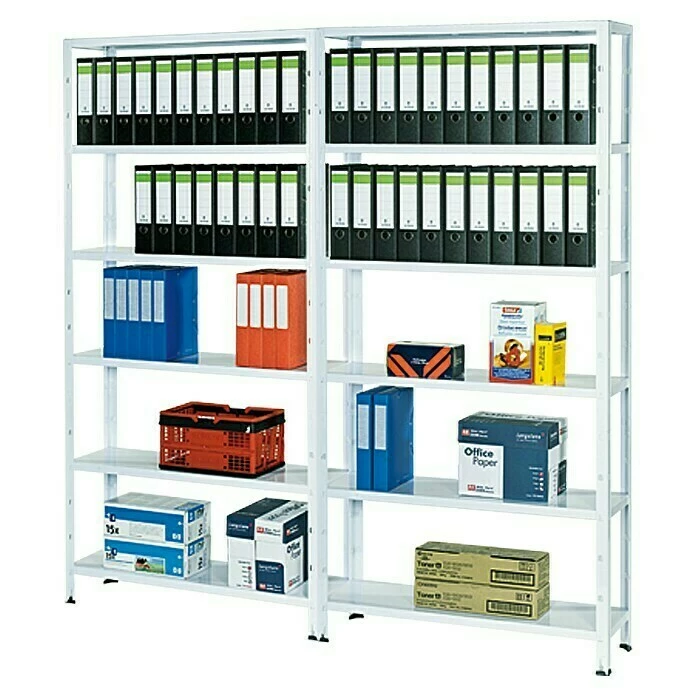 Das Aktenregal Office 100 von Regalux ist ideal zur Aufbewahrung von Aktenordnern geeignet, kann aber auch als Lagerfläche für verschiedenste Gegenstände genutzt werden. Es bietet viel Platz auf 6 in der Höhe verstellbaren Böden die jeweils mit einer Traglast von 60 kg belastet werden können. Dank des praktischen Stecksystems lässt es sich einfach und schnell aufbauen. Das Akten-Steckregal Office 100 ist pulverbeschichtet, was es ideal vor Witterungseinflüssen schützt.