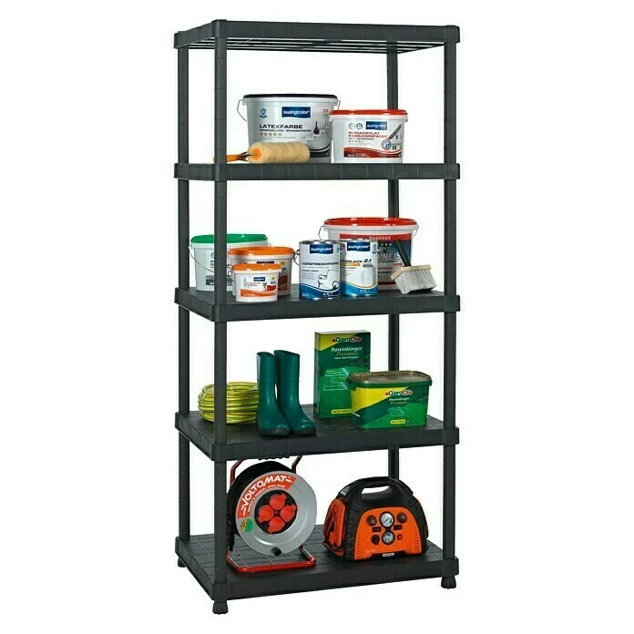 Das zuverlässige Regalux Kunststoffregal bietet dank seiner 5 Böden genügend Platz zur Aufbewahrung vieler Gegenstände. Durch die einfache Steckmontage lässt sich das Regal ohne Werkzeugeinsatz problemlos zusammenbauen. Mit einer Traglast von 90 kg pro Boden zeichnet sich das Regal zudem durch seine hohe Stabilität aus. Im Lieferumfang sind Verbindungsstücke und Wandhalter enthalten.