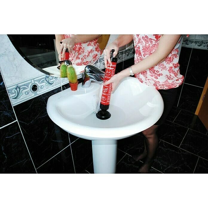 Die Rothenberger Abflusspumpe ROPUMP ist ein kraftvoller Saug-Druckreiniger zu lösen von Verstopfungen in Waschbecken, Abflüssen, Badewannen und Duschen. Durch den robusten Stempel kann die Luft kraftvoll in das Rohrsystem eingepresst werden. Für ein gutes Ergebnis sollte die verstopfte Leitung mit Wasser gefüllt werden, da dadurch ein höherer Druck aufgebaut werden kann. Der große Vorteil beim ROPUMP Abflussreiniger ist, dass er völlig ohne Chemie auskommt und die Umwelt nicht durch schädliche Stoffe belastet wird. Durch das Kugelgelenk zwischen Pumpe und Adapter wird eine hohe Flexibilität erreicht, die für eine bessere Abdichtung des Gummiadapters sorgt.