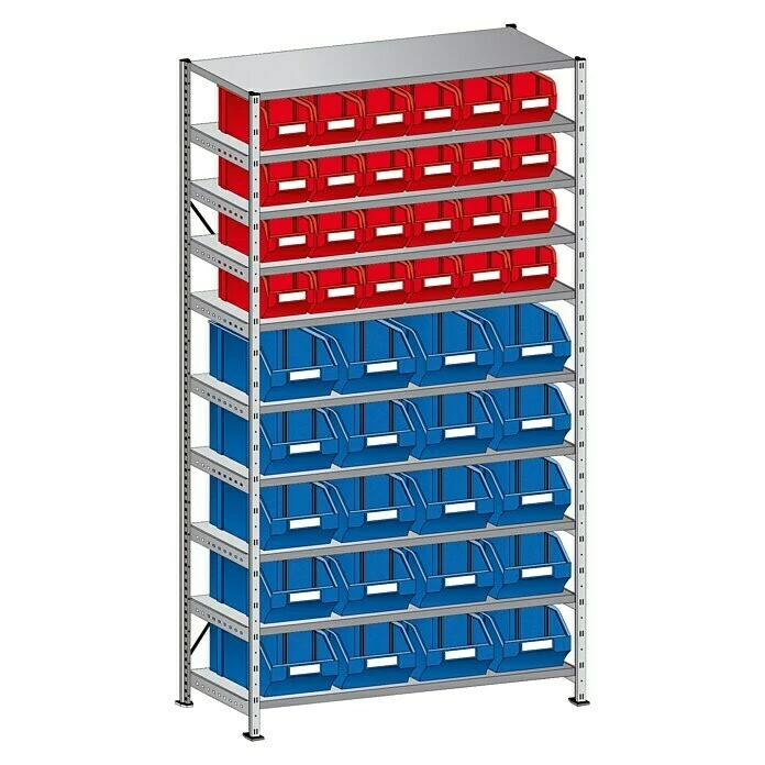 BAUHAUS Scholz System Metall-Sichtlagerkastenregal Grundelement S300 320 X 1.050 X 1.920 Mm, Traglast: 90 Kg/Boden, Stecken