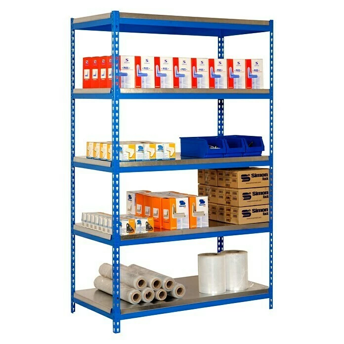 BAUHAUS Simonrack Bricoforte Metall-Schwerlastregal L X B X H: 60 X 100 X 200 Cm, Traglast: 300 Kg/Boden, Anzahl Böden: 5, Blau, Material Boden: Metall