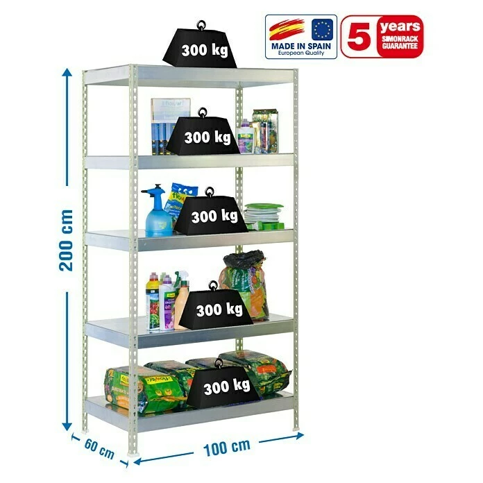 BAUHAUS Simonrack Bricoforte Metall-Schwerlastregal L X B X H: 60 X 100 X 200 Cm, Traglast: 300 Kg/Boden, Anzahl Böden: 5, Silber, Material Boden: Metall
