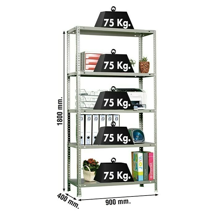 BAUHAUS Simonrack Simonclassic Metallregal Advantage L X B X H: 40 X 90 X 180 Cm, Traglast: 75 Kg/Boden, Anzahl Böden: 5 Stk., Schrauben, Grau