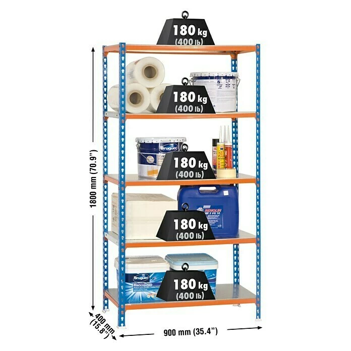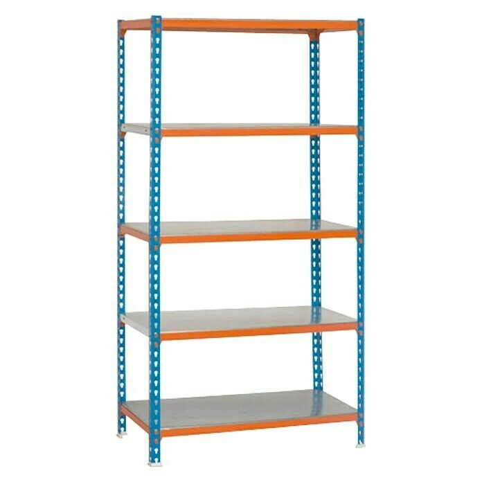 BAUHAUS Simonrack Simonclick Metallregal L X B X H: 40 X 90 X 180 Cm, Traglast: 180 Kg/Boden, Anzahl Böden: 5 Stk., Stecken, Blau/Orange
