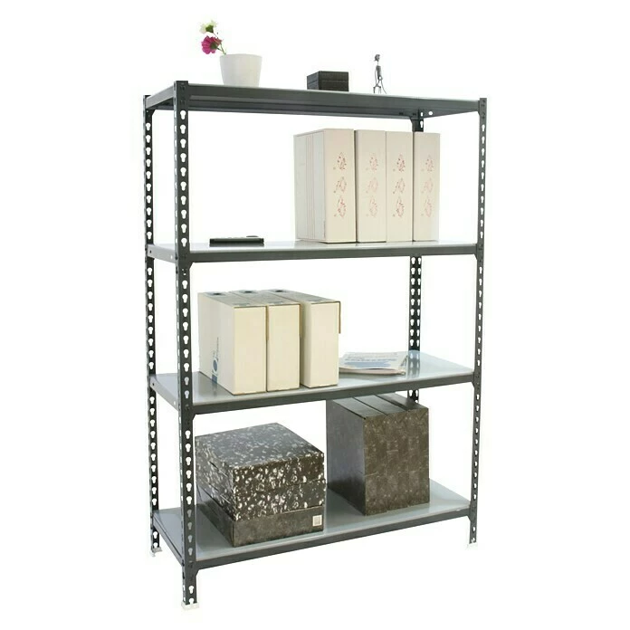 BAUHAUS Simonrack Simonclick Metallregal L X B X H: 50 X 90 X 150 Cm, Traglast: 180 Kg/Boden, Anzahl Böden: 4 Stk., Stecken, Anthrazit/Silber