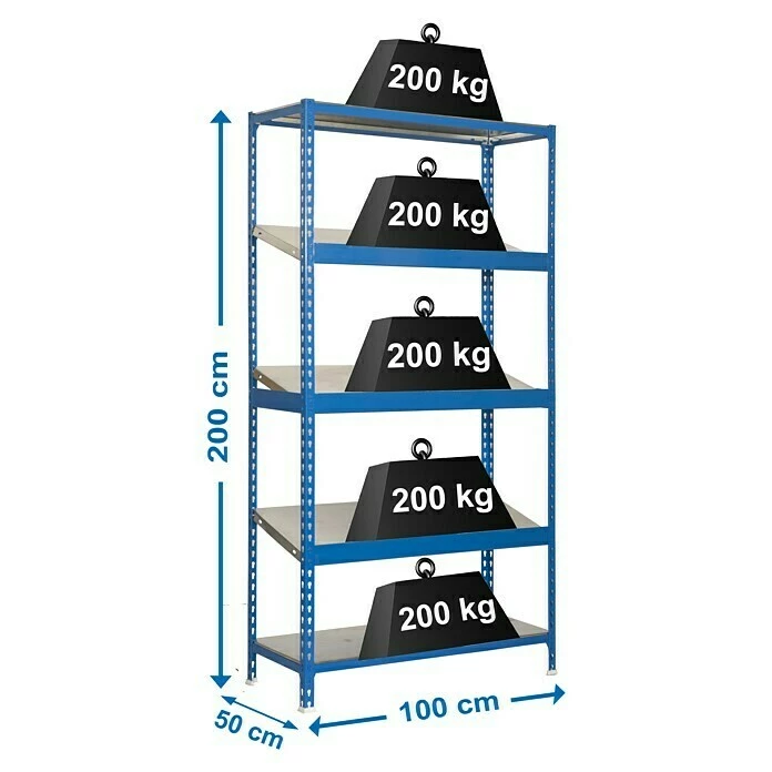 BAUHAUS Simonrack Simonclick Metallregal Simonexpo L X B X H: 50 X 100 X 200 Cm, Traglast: 200 Kg/Boden, Anzahl Böden: 5 Stk., Montageart: Stecken, Blau