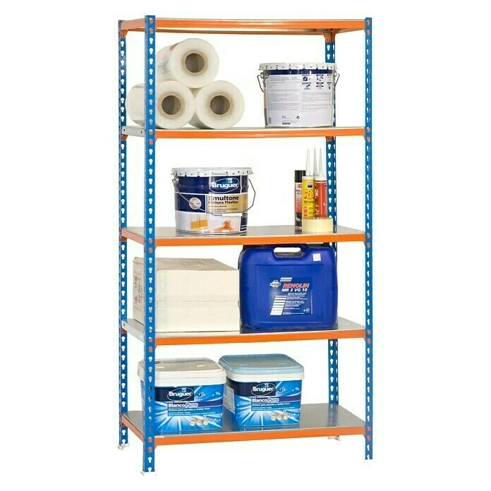 BAUHAUS Simonrack Simonclick Metallregal Super Plus L X B X H: 40 X 110 X 200 Cm, Traglast: 180 Kg/Boden, Anzahl Böden: 5 Stk., Stecken, Blau/Orange