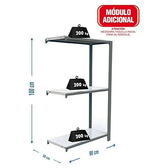 BAUHAUS Simonrack Simonoffice Aktenregal Anbauelement L X B X H: 30 X 90 X 100 Cm, Traglast: 200 Kg/Boden, Anzahl Böden: 3, Grau